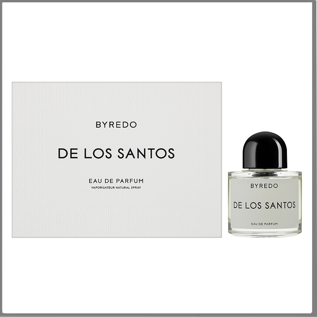 Спочатку парфумована вода заворожує соковитими фруктовими відтінками, що вигідно розкриваються в обіймах зеленого трав'янистого букета шавлії. Ці освіжно-бадьорливі переливи поступаються місцем витонченій чуттєвості кореня ірису в дуеті з димними мотивами ладану. Таке поєднання створює навколо атмосферу таємничості та тепла. Насамкінець Byredo De Los Santos звучить глибинною м'якістю амброксану та мускусу, оповитих смолисто-деревним відтінком олібануму.